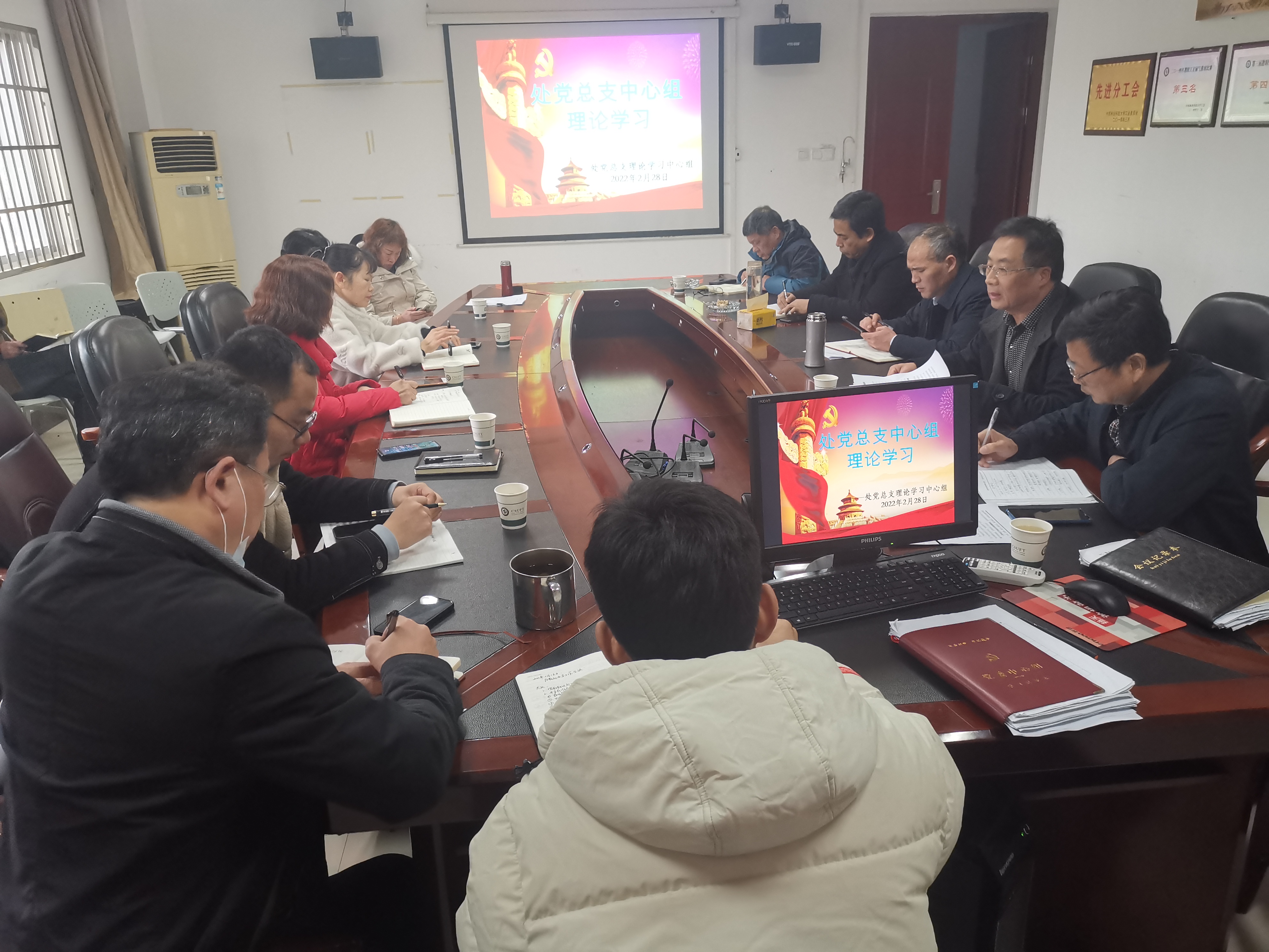 2022年2月28日下午,后勤管理处党总支理论学习中心组开展了新学期第一次集中(扩大)学习。处总支书记胡建刚主持学习,中心组成员、各支部书记、实职科级干部、科室负责人参加学习。
