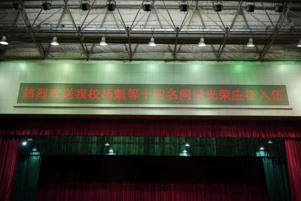 秦立春高度肯定了入伍大学生热爱国防、献身国防的高贵品质,希望他们珍惜机遇,扎根军营,为学校争光,为自己的军旅生涯谱写美好的篇章。他还代表学校为入伍大学生颁发了纪念品。