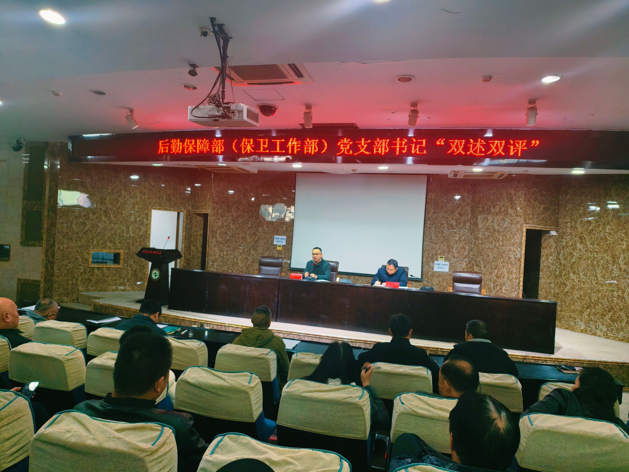12月25日,后勤保障部(保卫工作部)党支部在图书馆报告厅召开党员大会,专题开展支部书记“双述双评”工作,支部全体党员参加会议,机关党委委员、学生工作部、武装部部长李凯到会指导。